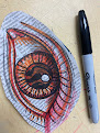 The above examples of mine is sort of a cubist self-portrait drawing using crazy abstract colors.
