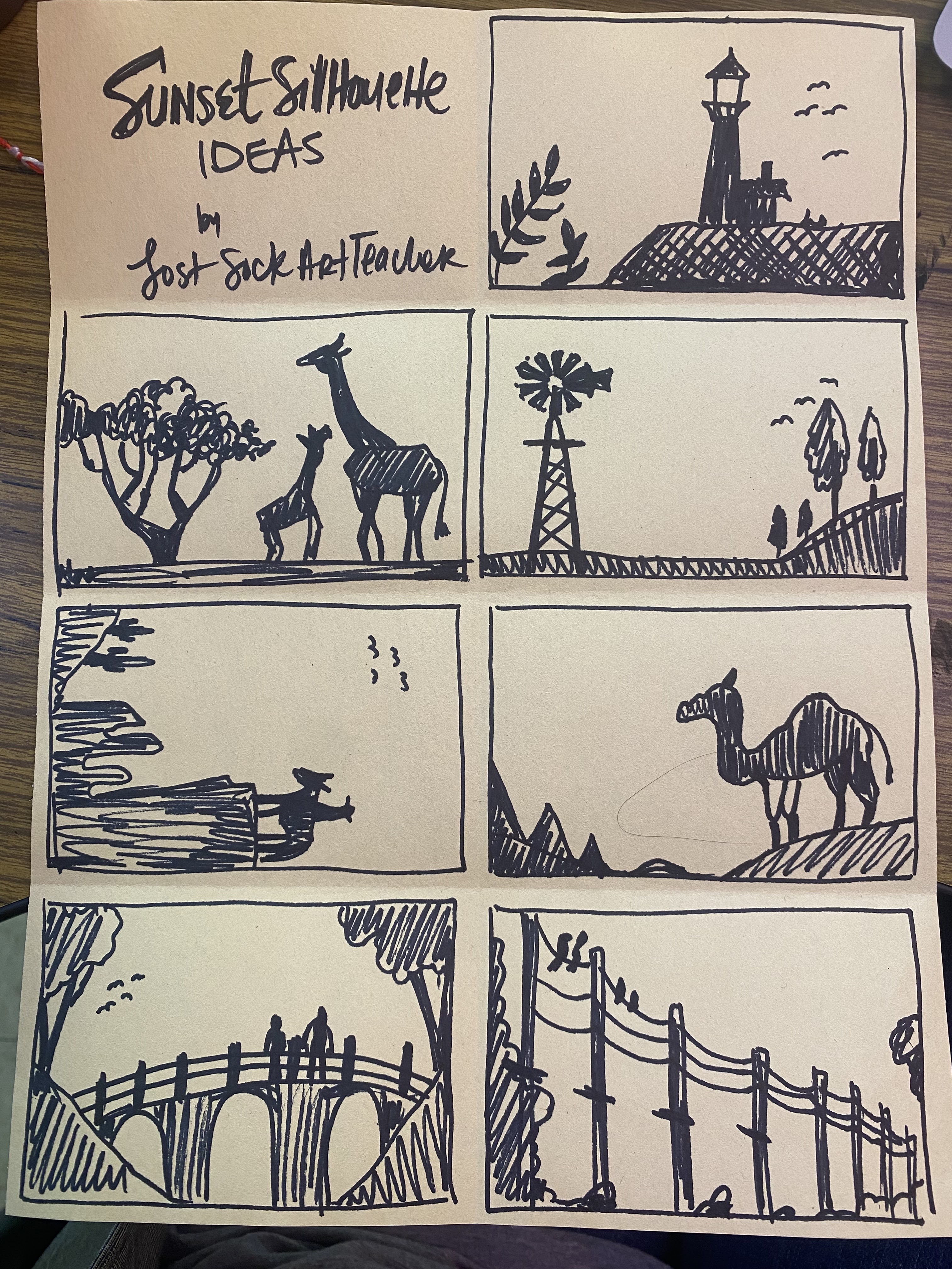 When it is time to paint the sunset, we will use tempera cakes. These work with water. The more water you add, the lighter the color. When you add colors to your sunset, refer to the color wheel for order and blending. You can use every color in the wheel, except for green. Typically, yellow or whit is used first at the bottom for the area where the sun is. Then you go upwards into orange, pink, red, purple, blue and black. Not all of these colors are always visible in a sunset. Study images online for examples of sunsets. Here are some I found that I thought were inspiring....